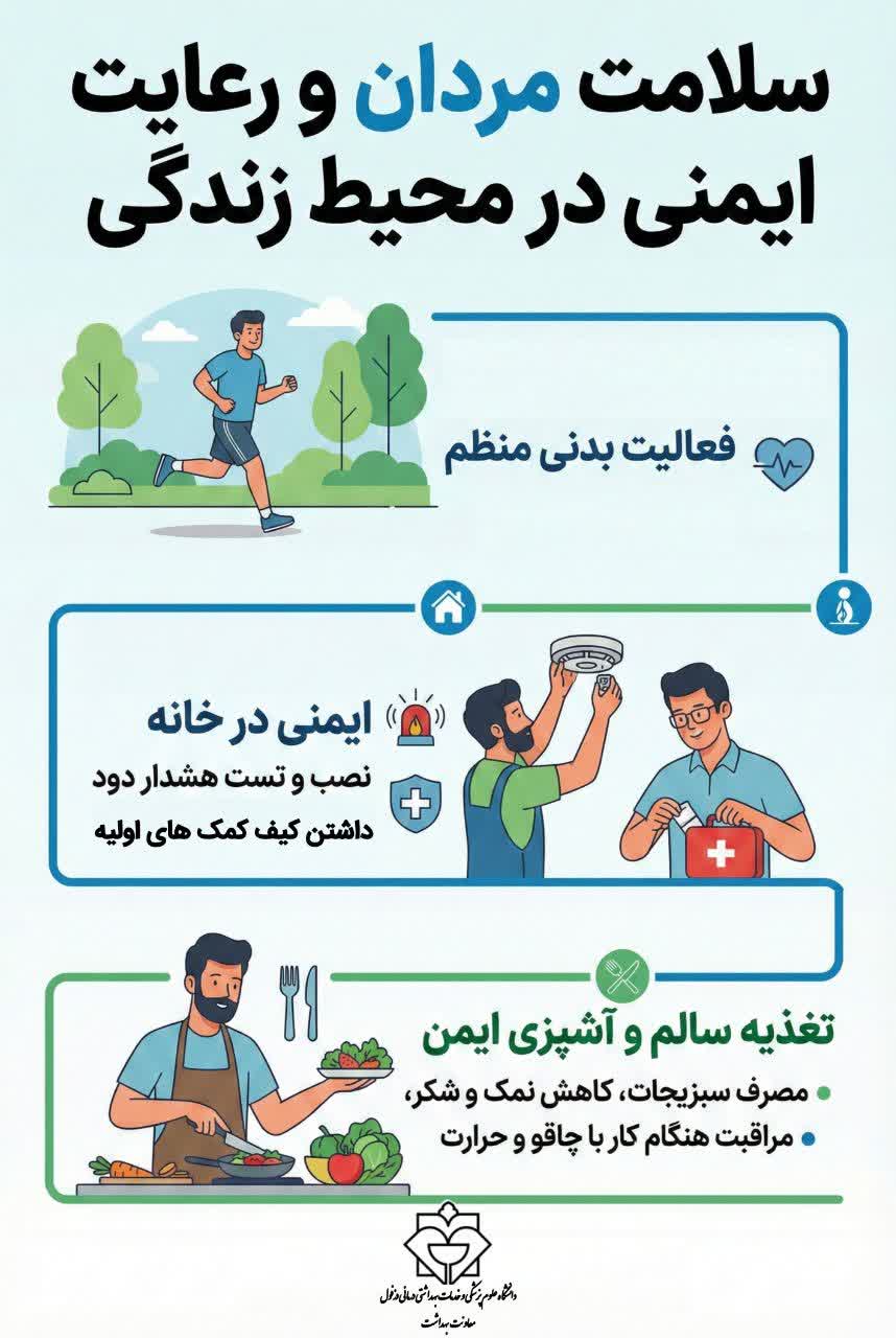 روابط عمومی معاونت بهداشت دانشگاه علوم پزشکی دزفول سلامت مردان و رعایت ایمنی در محیط زندگی 1404/12/02 - 09:17 - تعداد بازدید: 26 - کد خبر : 20271 - گروه خبری : اخبار معاونت بهداشتی - تعداد نظرات : 0 ️هفته سلامت مردان ۱ لغایت ۷ اسفندماه گرامی باد.
