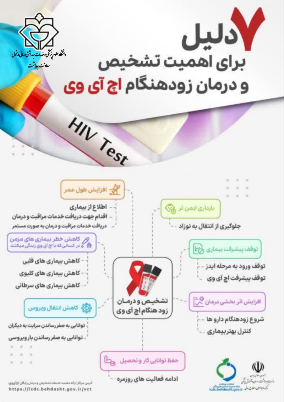 روابط عمومی معاونت بهداشت دانشگاه علوم پزشکی دزفول ۷ دلیل برای اهمیت تشخیص و درمان زودهنگام اچآیوی 1404/08/26 - 08:04 - تعداد بازدید: 65 - کد خبر : 19662 - گروه خبری : اخبار معاونت بهداشتی - تعداد نظرات : 0 ۲۰ آبان تا ۲۰ آذر ۱۴۰۴ پویش «من هم تست اچآیوی میدهم»