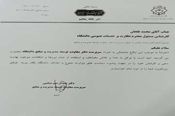 در این ابلاغ آمده است با توکل به خدا و تلاش مضاعف و استفاده از تمام نیروها و امکانات موجود نهایت سعی و کوشش خود را در جهت پیشبرد سیاست های وزارت مطبوع و اهداف دانشگاه بکار ببرید.
