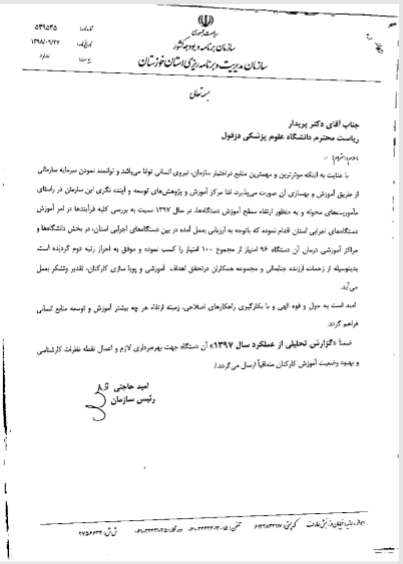 پیرو نامه ارسالی از سازمان مدیریت و برنامه ریزی استان خوزستان دانشگاه علوم پزشکی دزفول . . .