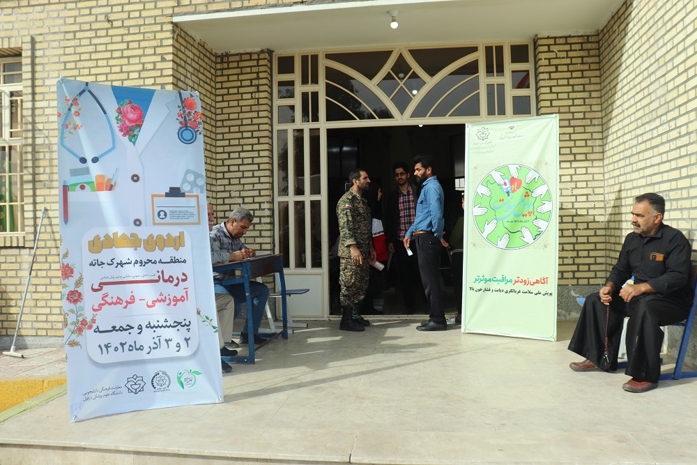 به گزارش خبرنگار وبدا، اردوی جهادی دانشگاه علوم پزشکی دزفول در منطقه محرم جاته این شهرستان با مشارکت بخش های از قبیل: درمانی، فرهنگی، آموزشی و بهداشتی زیر نظر معاونت فرهنگی دانشجویی و با همکاری کانون جهادی، کانون سلامت، کانونو هلال احمر و انجمن اسلامی این دانشگاه، دوم و سوم آذر ماه ۱۴۰۲ برگزار شد.