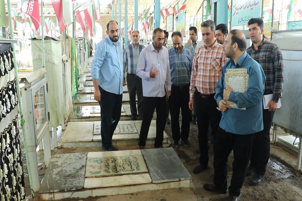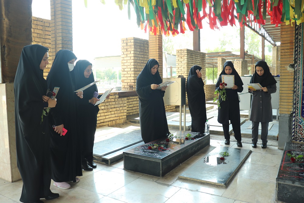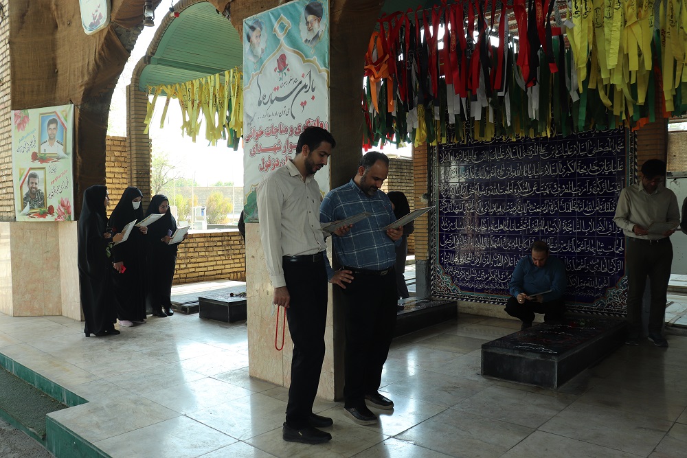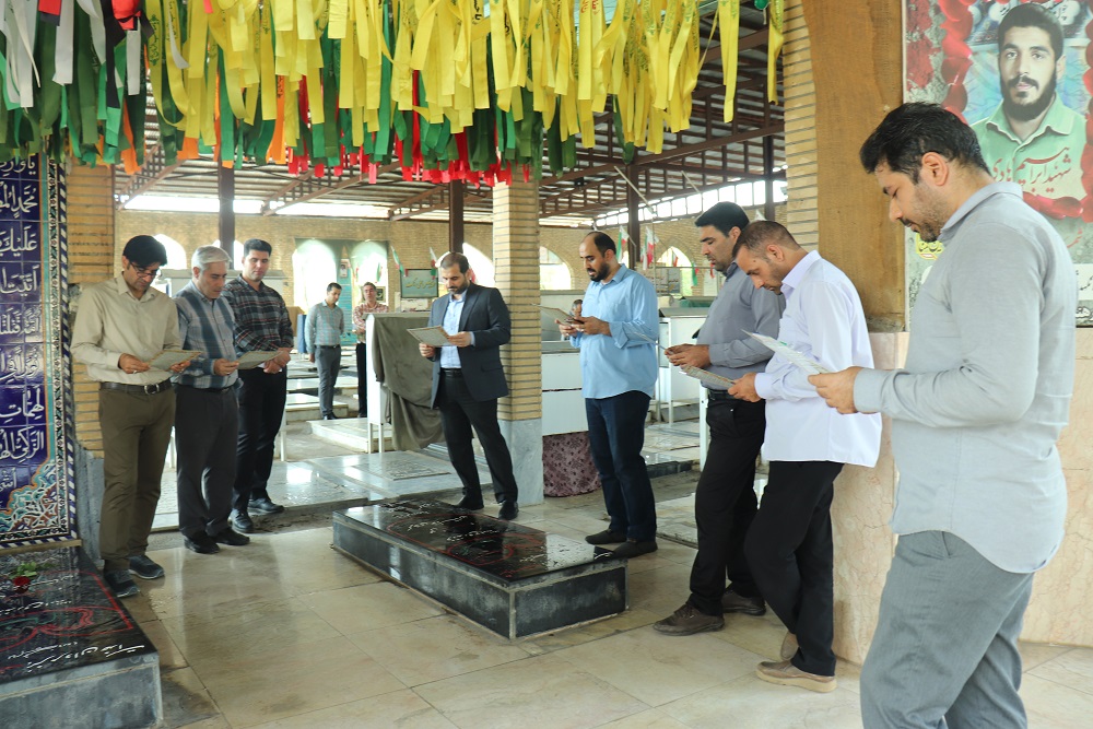 در این مراسم، کارکنان دانشگاه با جز خوانی قرآن و تلاوت صوت قرآن و با ذکر آیه « وَلا تَحسَبَنَّ الَّذینَ قُتِلوا فی سَبیلِ اللَّهِ أَمواتًا بَل أَحیاءٌ عِندَ رَبِّهِم یُرزَقونَ» با عطر افشانی، غبار روبی و نثار فاتحه و اهدای گل بر مزار مطهر شهدای مدافع حرم، شهدای مدافع امنیت و شهدای مدافع سلامت و تنها شهید انتفاضه فلسطین، یاد و خاطره شهدا را گرامی داشتند و با آرمان های والای شهدای گرانقدر، امام شهداء و منویات مقام معظم رهبری(مدظله العالی) تجدید پیمان نمودند.