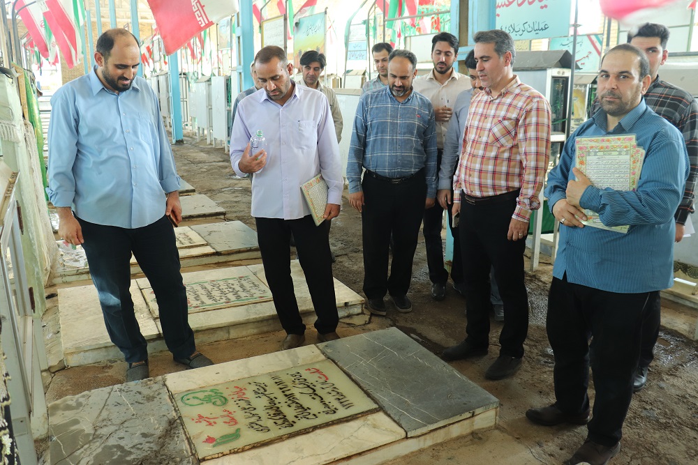 ستاد شاهد و ایثارگر دانشگاه علوم پزشکی دزفول، با برگزاری مراسم غبارروبی و عطر افشانی مزار مطهر شهدای ۸ سال دفاع مقدس همراه با حضور معاون فرهنگی دانشجویی و معاونت آموزش تحقیقات و فناوری، مدیران و جمعی از کارکنان دانشگاه در گلزار شهدای این شهرستان با شهیدان تجدید میثاق کردند.