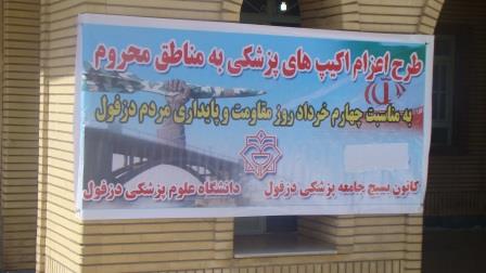 بسیج جامعه پزشکی به مناسبت چهارم خرداد و" روز دزفول"اردوی جهادی خود را به روستای محروم امیرالمومنین(ع) انجام داد. دکتر بهروز چگنی فرمانده کانون بسیج جامعه پزشکی در این رابطه گفت : در این اردوی جهادی چندین پزشک متخصص زنان،اطفال،داخلی و اعصاب و روان با ویزیت نمودن بیش از 250 نفر از اهالی این روستا بصورت رایگان در این برنامه شرکت نمودند.وی افزود بسیج جامعه پزشکی به مناسبتهای مختلف برنامه هایی از این نوع اردوهای جهادی به مناطق محروم در برنامه دارند و این کانون از کلیه همکاران جهت شرکت در این برنامه ها دعوت بعمل می آورد.