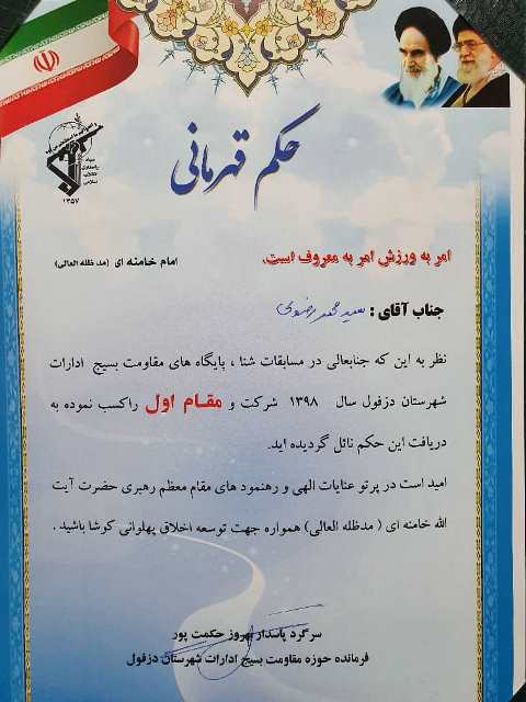 رتبه نخست بالا 35 سال سید محمد رضوی دانشگاه علوم پزشکی دزفول