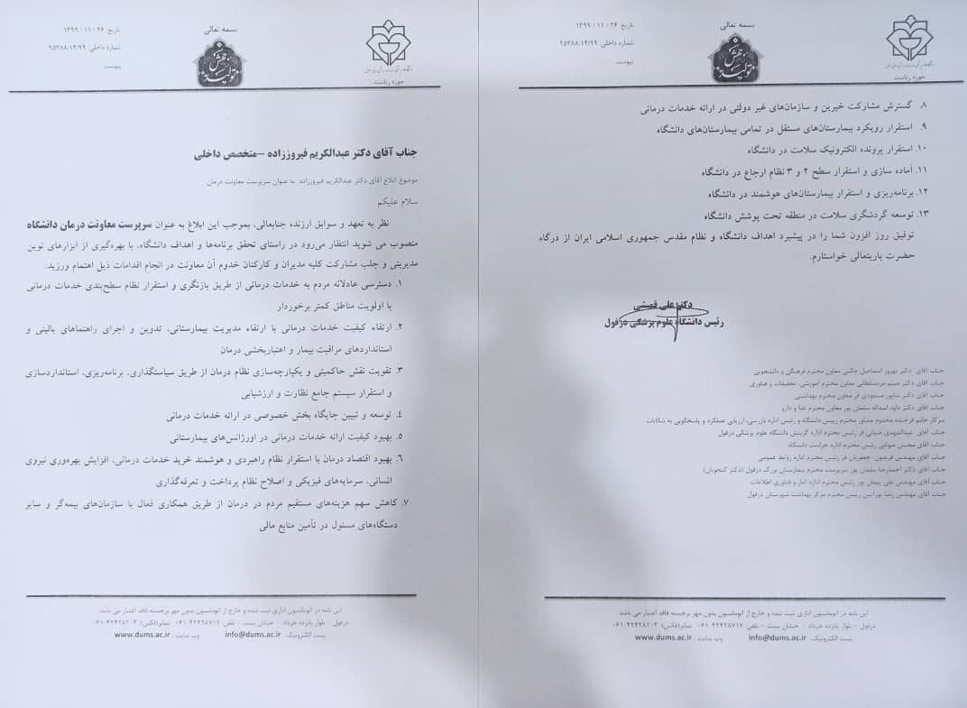 با ابلاغ رئیس دانشگاه علوم پزشکی دزفول سرپرست معاونت درمان دانشگاه علوم پزشکی دزفول منصوب شد.