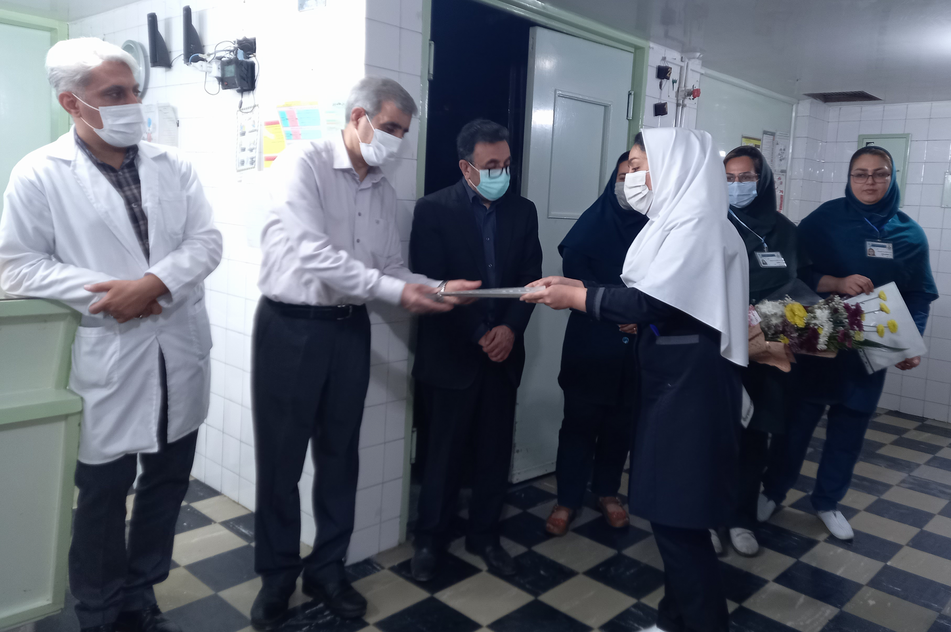 معاون درمان افزود: در این بازدید میدانی از مسئولین و کلیه کارکنان مرکز زنان و زایمان حضرت زینب (س) و بخش زایشگاه بیمارستان خیریه آیت الله نبوی (ره) تجلیل با اهدای گل و شیرینی تجلیل به عمل آمد.
