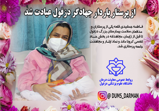 رئیس اداره پرستاری معاونت درمان دانشگاه علوم پزشکی دزفول خبر داد:جمشیدی قلعه یکی از پرستاران و مدافعان سلامت بیمارستان بزرگ دزفول تا قبل از زایمان، مجاهدانه در بخش حاد تنفسی کرونا ماند و نماد ایثار و مجاهدت جامعه پرستاری شد.