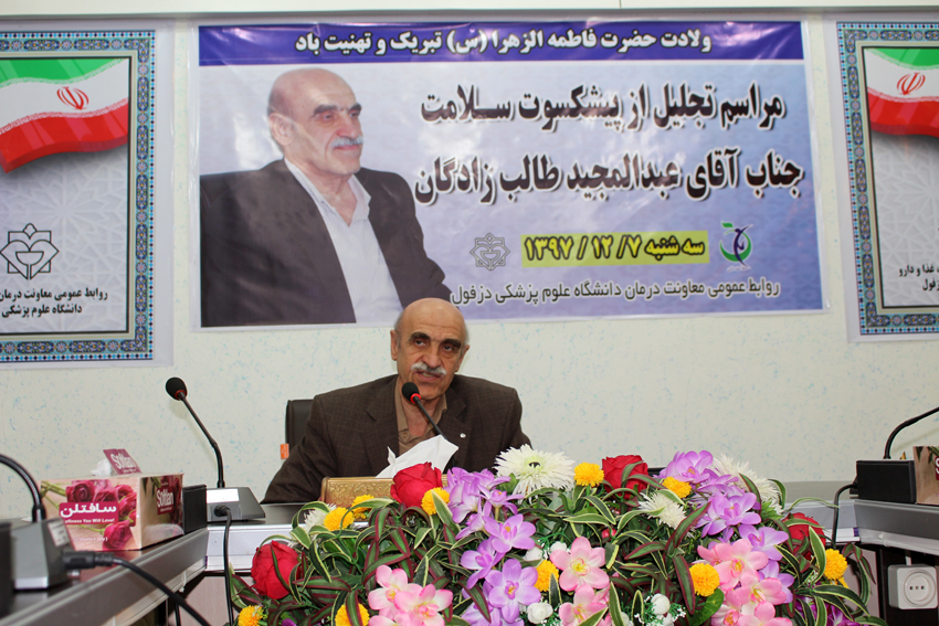 به گزارش خبرنگار وب دا به نقل از روابط عمومی معاونت درمان،مسعود زمانی راد،در جلسه تکریم و تجلیل از باسابقه ترین مرد حوزه سلامت دزفول اظهار داشت:همزمان با سالروز ولادت حضرت فاطمه (س)، از عبدالمجید طالب زادگان پیشکسوت حوزه سلامت تجلیل شد.این شخص خستگی ناپذیر از 19 فروردین ماه 59 در بیمارستان افشار دزفول بعنوان مدیر بیمارستان استخدام شد.لیاقت و درایت ایشان باعث شد تا اعتماد مسئولین وقت را به خود جلب نموده و در مقاطعی همزمان مدیر و ریاست بیمارستان باشد.