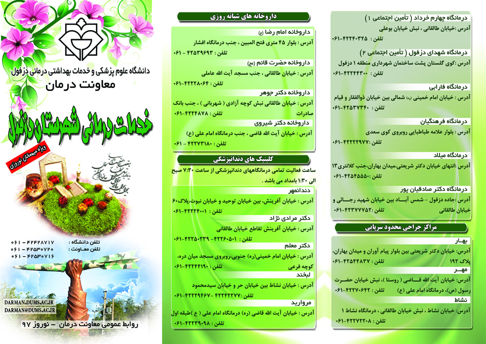 بروشور مراکز درمانی فعال در نوروز 97 توزیع می گردد