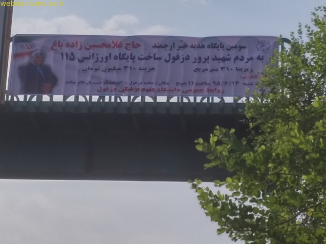 دکتر یوسف پریدار رئیس دانشگاه علوم پزشکی دزفول با اعلام این خبر اظهار داشت: این سومین پایگاه اورژانس است که آقای زاده دباغ خود را متعهد به ساخت آن نموده است.