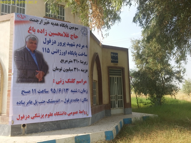 دکتر یوسف پریدار رئیس دانشگاه علوم پزشکی دزفول با اعلام این خبر اظهار داشت این سومین پایگاه اورژانس است که آقای زاده دباغ خود را متعهد به ساخت آن نموده است.