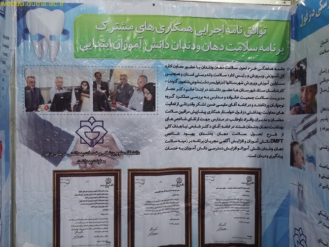 خوشبختانه با حضور وزیر  و معاونین در غرفه دزفول نیز گزارشی مختصر از فرایند کار بهداشت دهان و دندان ارایه شد. گفتنی است  همزمان با نمایشگاه همایشی در قالب طرح تحول نظام سلامت در حوزه بهداشت دهان و دندان نیز برگزار گردید.در این همایش معاونین درمان دانشگاهها و مسئولین بهداشت دهان و دندان دعوت شده بودند که از دانشگاه علوم پزشکی دزفول دکتر مهرداد کلانتریان و عذرا علی نژاد شرکت کردند.