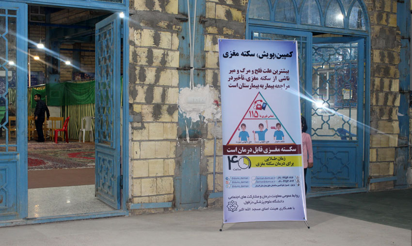 در هفته سکته مغزی که از 26 آبان ماه شروع و تا دوم آذرماه ادامه دارد این پویش مردمی به مدت 2 شب در شبهای یکشنبه و دوشنبه 27 و 28 آبان ماه 97 هنگام نماز مغرب و عشا در مسجد الله اکبر کوی بهاران دزفول به همت معاونت درمان و با همکاری معاونت های اجتماعی و فرهنگی دانشجویی دانشگاه و هیئت امنای مسجد الله اکبر برگزار گردید.