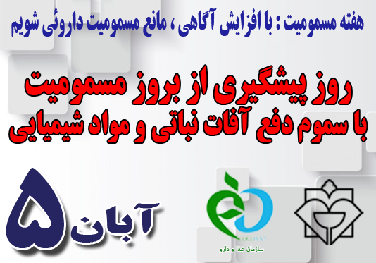 برای چهاردهمین سال متوالی یکم تا هفتم آبان ماه توسط وزارت بهداشت،درمان و آموزش پزشکی،هفته پیشگیری از مسمومیت ها نامگذاری می شود و پنجم آبان بعنوان روز پیشگیری از بروز مسمومیت با سموم دفع آفات نباتی و مواد شیمیایی می باشد.