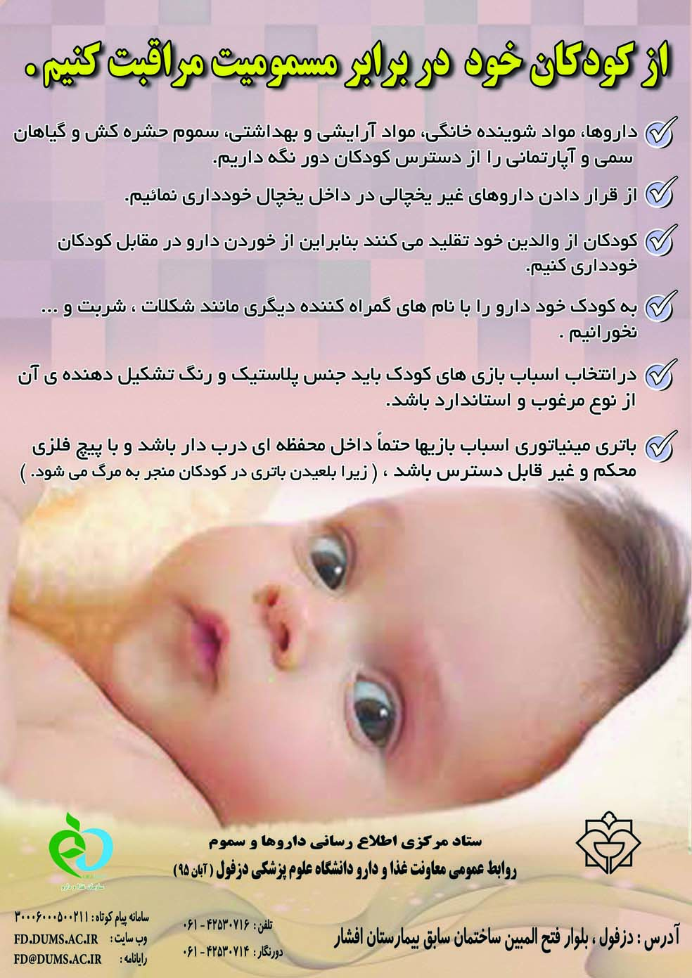 مدیر داروئی معاونت غذا و داروی دانشگاه علوم پزشکی دزفول اعلام کرد : والدین و بخصوص مادران باید عواملی که باعث مسمومیت در کودکان می شوند را آموزش ببینند.