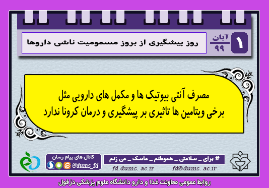 برای پانزدهمین سال متوالی هفته اول آبان توسط وزارت بهداشت،درمان و آموزش پزشکی هفته پیشگیری از بروز مسمومیت ها نامگذاری شده است و اول آبان روز پیشگیری از بروز مسمومیت ناشی از داروها می باشد.