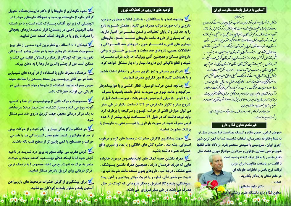 مسئول روابط عمومی معاونت غذا و دارو دانشگاه علوم پزشکی دزفول در آستانه سال نو: