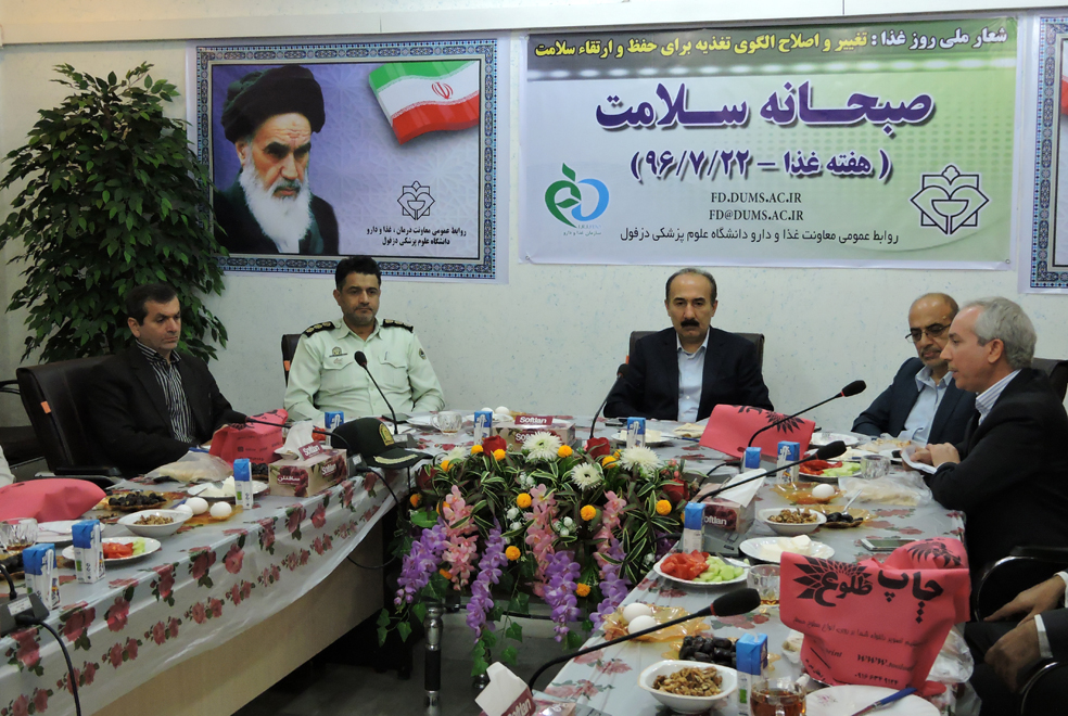 صبحانه سلامت با حضور ریاست دانشگاه،فرماندار ویژه دزفول،معاونان غذا و دارو،فرهنگی دانشجوئی و بهداشت دانشگاه،رئیس نیروی انتظامی،مسئول رادیو شهری دزفول،رئیس شورای شهر دزفول،رئیس اداره صنعت معدن و تجارت،نماینده اداره آموزش و پرورش دزفول و کلیه پرسنل معاونت های درمان،غذا و دارو در صبح روز شنبه 22 مهرماه سال جاری در سالن اجتماعات آفتاب این معاونت صرف گردید.