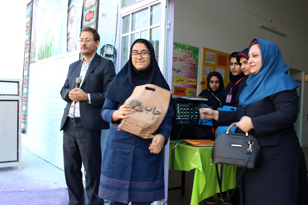 در پایان از دانش آموزان سئوالاتی در خصوص مواد غذائی سالم و ناسالم مطرح گردید و به 10 نفر از آنها که پاسخ درست ارائه دادند هدایائی به رسم یادبود تقدیم گردید و همچنین در جمع صمیمی آموزگاران در دفتر مدرسه به پرسش ها و دغدغه های آنها پاسخ داده شد.