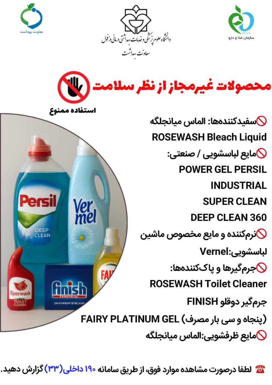 روابط عمومی معاونت بهداشت دانشگاه علوم پزشکی دزفول اسامی محصولات شوینده فاقد مجوز 1404/09/11 - 07:46 - تعداد بازدید: 20 - کد خبر : 19803 - گروه خبری : اخبار معاونت بهداشتی - تعداد نظرات : 0