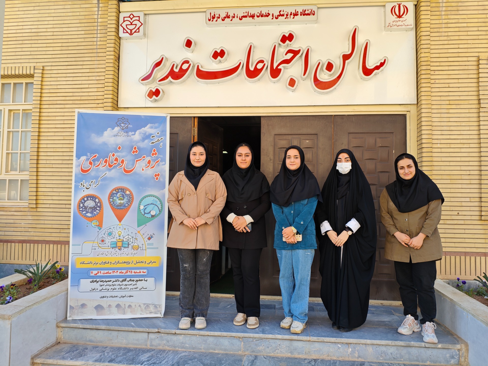 به مناسبت هفته پژوهش و فناوری، جشن ویژهای در دانشگاه علوم پزشکی دزفول با سخنرانی دکتر حمیدرضا برداران، رئیس کمیسیون نشریات علوم پزشکی وزارت بهداشت و دکتر محمدامین بهمنش، معاون آموزش، تحقیقات و فناوری دانشگاه، و حضور اعضای هیأت علمی، پژوهشگران، فناوران و مسئولان دانشگاه برگزار شد.