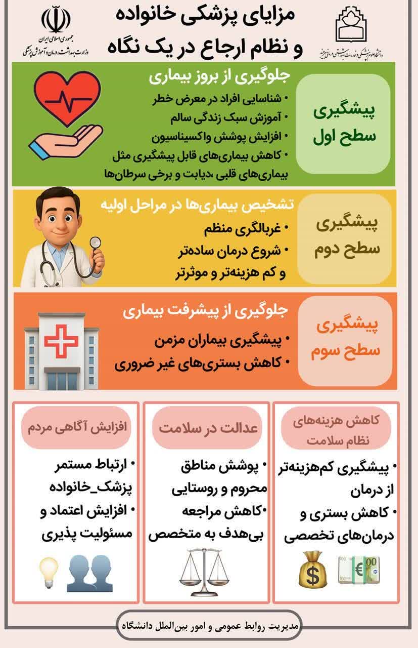 روابط عمومی معاونت بهداشت دانشگاه علوم پزشکی دزفول مزایای پزشکی خانواده و نظام ارجاع در یک نگاه 1404/11/12 - 11:10 - تعداد بازدید: 6 - کد خبر : 20164 - گروه خبری : اخبار معاونت بهداشتی - تعداد نظرات : 0