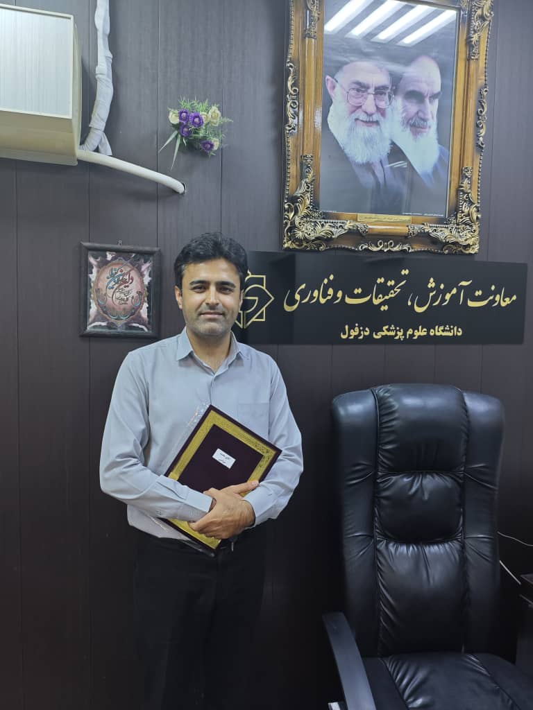 تقدیر معاون آموزش، تحقیقات و فناوری و رئیس دانشکده پرستاری و مامایی از محمد خواصی به عنوان استاد نمونه رشته پرستاری دانشگاه علوم پزشکی دزفول