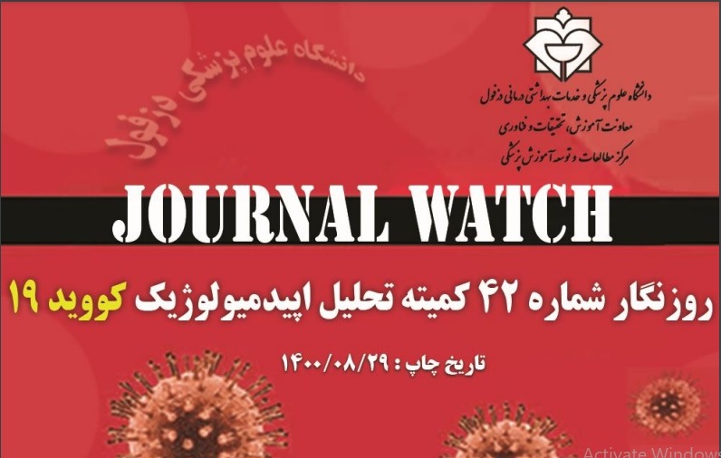 معاونت آموزش تحقیقات و فناوری دانشگاه علوم پزشکی دزفول روزنگار شماره 42 کمیته تحلیل اپیدمیولوژیک کووید19 // - 17:38 - تعداد بازدید: 975 - کد خبر : 11777 - گروه خبری : یادداشت روز - تعداد نظرات : 0 دکتر نوشین اسد مسجدی دکتری توکسیکولوژی، دکتر عباس مرید نیا دکتری تخصصی پزشکی مولکولی