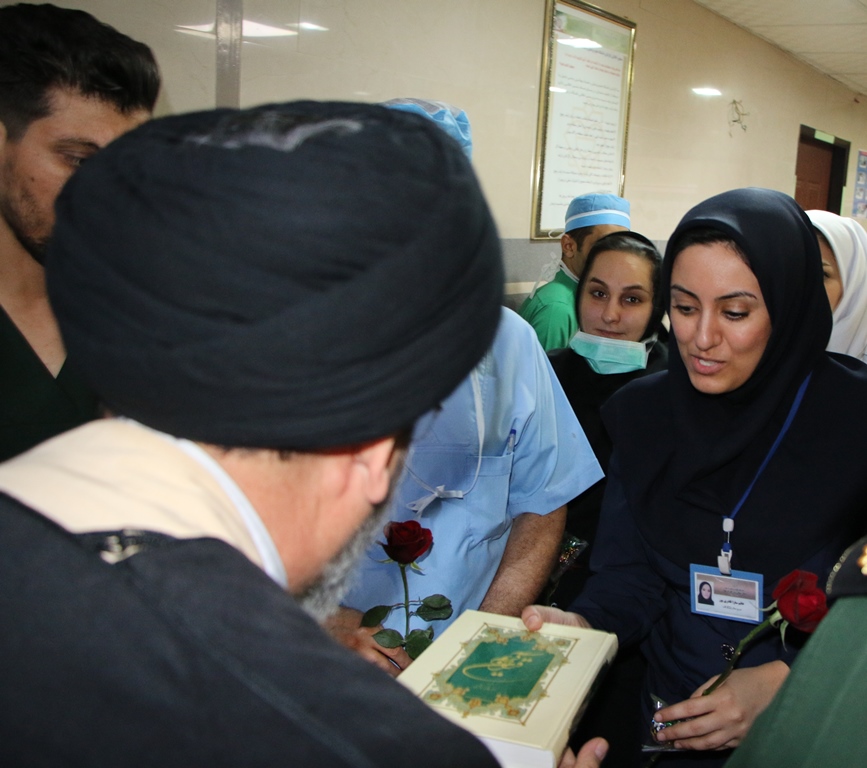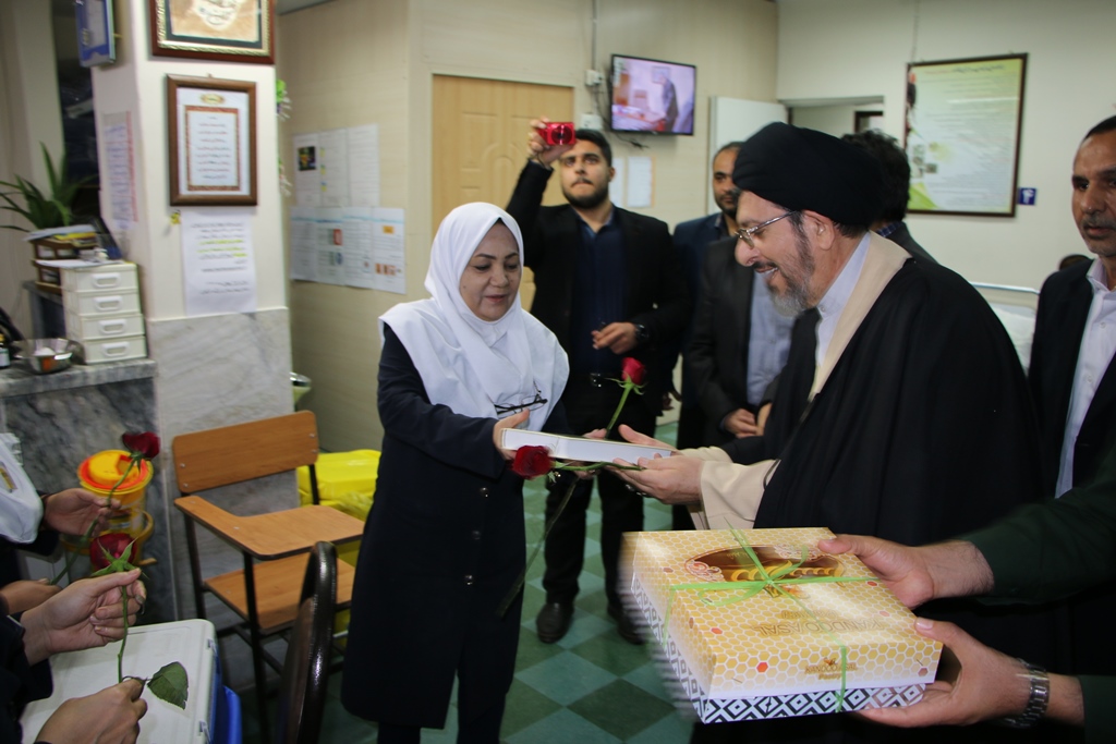 دراین دیدار سرهنگ سعادت فرمانده سپاه دزفول، پوررکنی معاون عمرانی فرماندار،دکترمیرشکاک معاون توسعه دانشگاه باهمراهی امام جمعه باحضوردربخشهای اورژانس،تالاسمی،آنژیوگرافی ومرکزدرمانی امام مجتبی ع (شامل بخشهای دیالیز-انکولوژی وهماتولوژی)وبخش تحقیقاتی درمانی نازایی بااهداءکلام الله مجیدوگل وشیرینی میلادباسعادت حضرت زینب س وروزپرستارراتبریک گفتند.درابتدای این مراسم امام جمعه محترم وهمراهان باحضوردردفترپرستاری درنشستی صمیمانه این مناسبت فرخنده راتبریک وشادباش گفته درسخنانی جایگاه پرستارواسوه پرستاران حضرت زینب رامتذکرشدند.