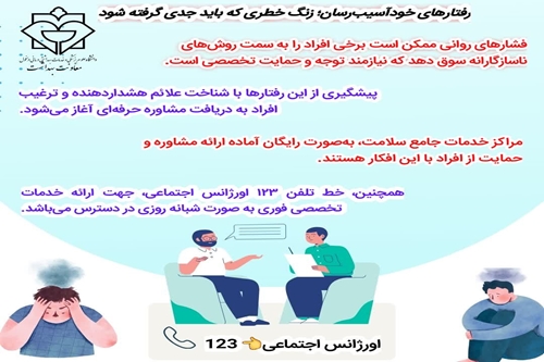 دکتر عصار در ادامه افزود: پیشگیری از رفتارهای خود آسیب رسان، با شناخت علائم هشداردهنده و جدی گرفتن آنها آغاز میشود.