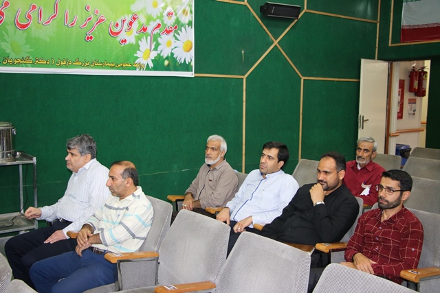 مسئول روابط عمومی بیمارستان بزرگ دزفول گفت:به مناسبت فرارسیدن ایام رحلت پیامبر(ص) وامام حسن(ع)مراسمی با سخنرانی دکترحبیب الله سعد درسالن ولایت بیمارستان بزرگ دزفول برگزار شد.