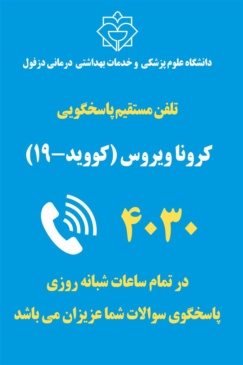 شماره تلفن4030 پاسخگوی سوالات شما در خصوص کرونا ویروس در تمام ساعات شبانه روز می باشد.