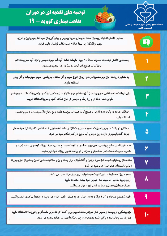 توصیه های تغذیه ای در دوران نقاهت بیماری کووید 19(پوستر)