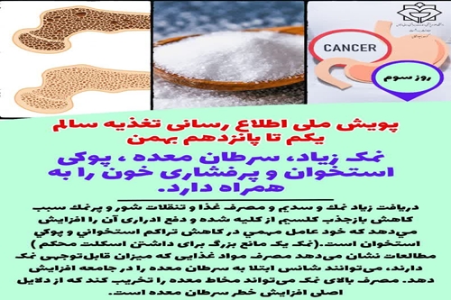 نمک زیاد، سرطان معده،پوکی استخوان و پرفشاری خون را به همراه دارد.