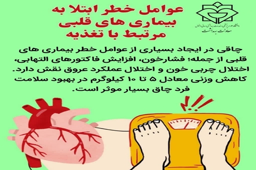 ️چاقی در ایجاد بسیاری از عوامل خطر بیماری های قلبی از جمله؛ فشارخون، افزایش فاکتورهای التهابی، اختلال چربی خون و اختلال عملکرد عروق نقش دارد.