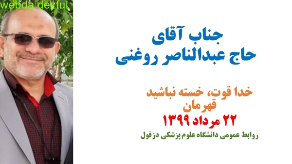 از عبدالناصر روغنی کارشناس رادیولوژی و مداح اهل بیت و مسئول روابط عمومی بیمارستان بزرگ دزفول که سالها در حوزه روابط عمومی فعالیت داشتند.
