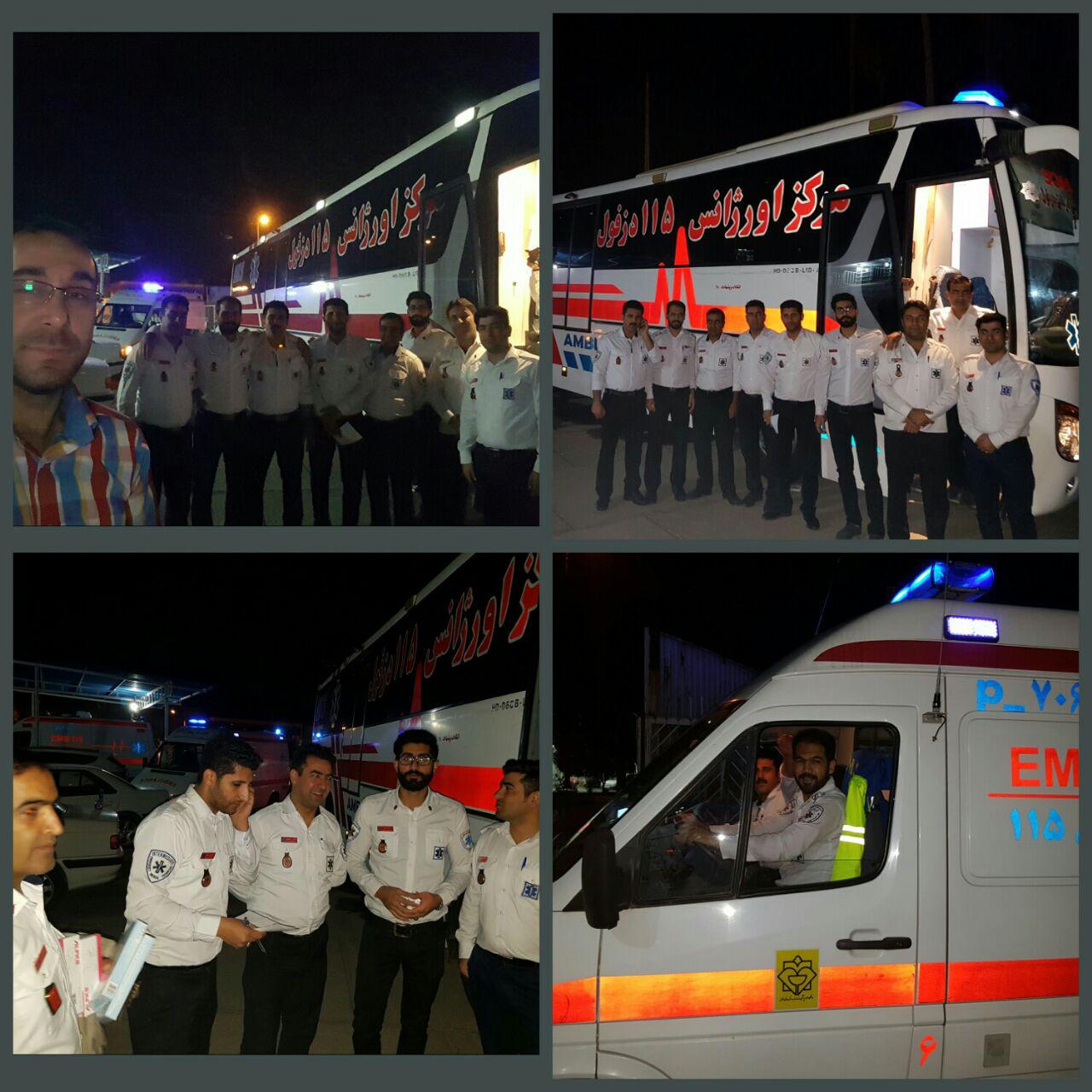 اعزام 7 تکنسین،یک دستگاه اتوبوس آمبولانس و یک دستگاه آمبولانس به غرب کشور