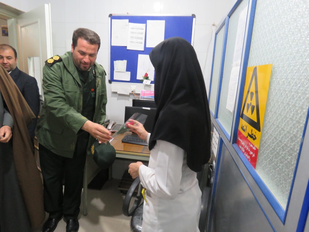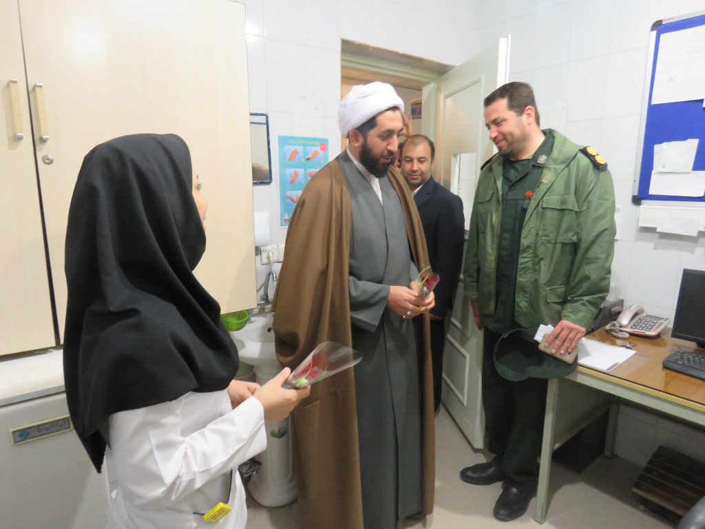 فرمانده ناحیه مقاومت بسیج سپاه گتوند به همراه جمعی از کارکنان به مناسبت ولادت حضرت زینب(س) و روز پرستار، با اهداء شاخه گل از پرستاران تقدیر کردند.