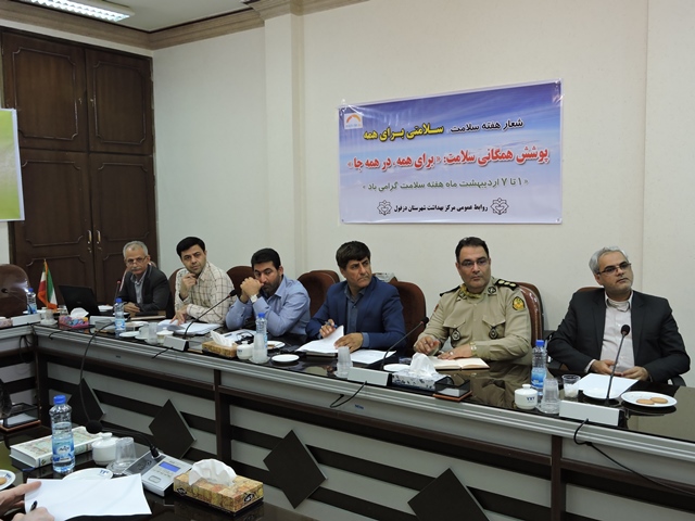 اولین جلسه شورای سلامت و امنیت غذایی سال 97 در تاریخ 26/1/97 ساعت 11:30 در محل فرمانداری ویژه شهرستان دزفول با ریاست سرپرست فرمانداری ویژه شهرستان دزفول و با تلاوت آیاتی از قران مجید برگزار گردید. ابتدا آقای دکتر عیسی زاده ضمن خوشامد گویی و تبریک فرارسیدن سال جدید به حاضرین از فعالیت همه ی ادارات و ارگانها در نوروز و استقبال از مسافرین نوروزی و کاروانهای راهیان نور که موجبات رضایت همشهریان و مسافران را فراهم نموده اند تقدیر و تشکر نمودند . در ادامه آقای رضا پورآیین رییس مرکز بهداشت شهرستان دزفول ضمن اعلام شعار هفته ی سلامت (سلامت برای همه) و روزشمار هفته سلامت، دستور کار جلسه را قرائت نمودند؛ که بررسی عملکرد جلسات شورای بهداشت و امنیت غذایی در سال 96 ، بهره برداری از واحد پیش سرد کن کشتارگاه دام و ممنوعیت تبلیغ کالاهای آسیب رسان از اهم مطالب مطرح شده در این جلسه می باشد.