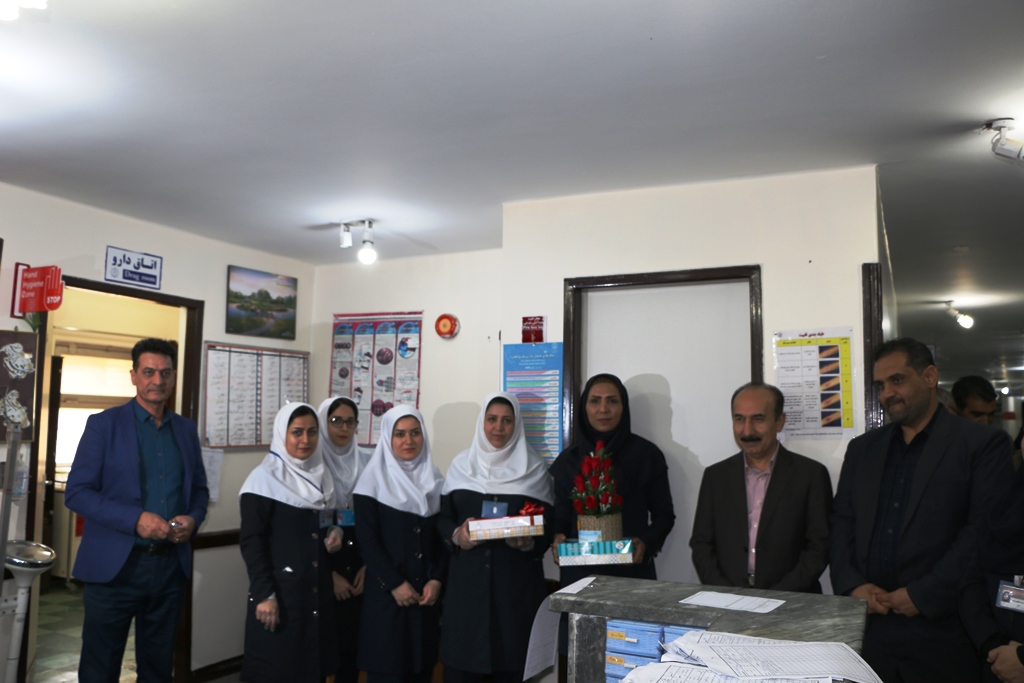 دربخش دیگر کارکنان رسانه دزبانو درحرکتی نمادین با اهداء گل و شیرینی و حضور درجمع پرستاران ضمن تبریک باپرستاران مصاحبه کردند.
