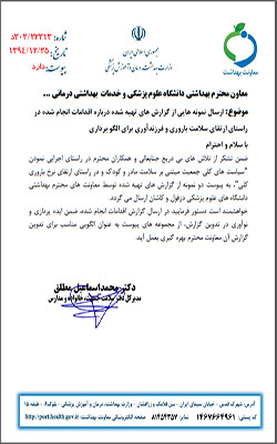 دکتر مطلق مدیر کل محترم دفتر سلامت جمعیت، خانواده و مدارس طی نامه ای ،ضمن تشکر از فعالیتهای معاونت بهداشت و مدیریت سلامت خانواده دانشگاه دزفول ، عملکرد برنامه سلامت باروری دانشگاه علوم پزشکی دزفول در سال 93 را، به عنوان الگوی مناسب تدوین گزارش عملکرد به سایر دانشگاههای علوم پزشکی کشور معرفی نمود.
