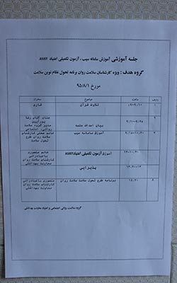 در راستای اجرای برنامه  های نظام نوین تحول سلامت و ضرورت آشنایی کار با سامانه سیب جلسه توانمند سازی جهت گروه هدف کارشناسان سلامت روان با محوریت گروه سلامت روانی اجتماعی و اعتیاد معاونت بهداشتی  مورخ سه شنبه 4/8/95  برگزار گردید در این جلسه در ابتداء نحوه استفاده از سامانه سیب و تکمیل و ارجاع برنامه سلامت روان به صورت عملی آموزش داده شد و در ادامه تمامی کارشناسان به صورت فردی در زمینه بهره وری از سامانه سیب اجرای  عملی  انجام دادند .