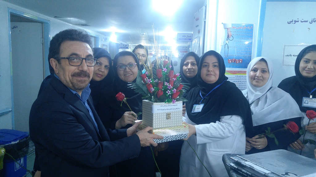 نیمه اردیبهشت ماه مصادف باروزجهانی ماما(5می)دریک مراسم نمادین دکترتبرک پورودیگرمسولین باحضوردربخشهای لیبر،جراحی زنان،زنان وزایمان وتحقیقات درمانی نازایی ام البنین(ع)،این مناسبت رابه کارکنان وروسای بخشها تبریک گفت.