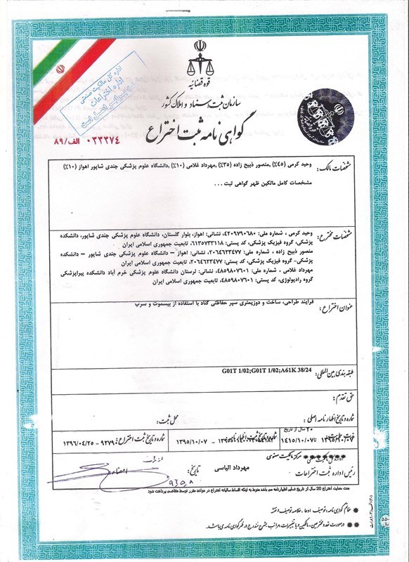 ثبت اختراع ملی توسط کارشناس ارشد بیمارستان بزرگ دزفول
