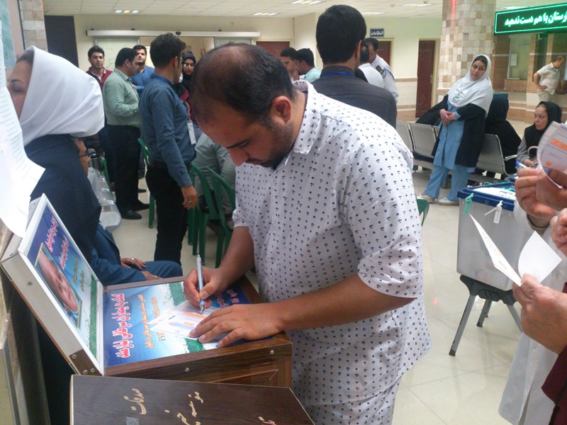 این کارباهماهنگی مسولین شیفت عصربیمارستان وفرمانداری وسایرعزیزان وبااطلاع ازطریق پیج، واجدان شرایط، حاضردربیمارستان ازکلیه بخشها وقسمتهای مختلف رای خودرابه صندوقهای رای انداختند.