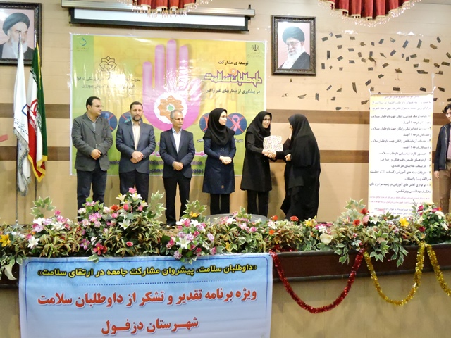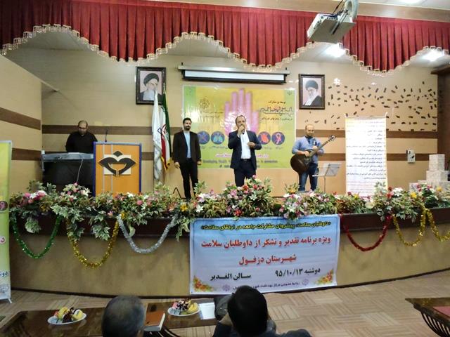 به گزارش خبرنگار وب دا، این مراسم با حضور دکتر مسعودی فر معاون اجرایی معاونت بهداشتی،رضا پورآیین رییس مرکز بهداشت شهرستان دزفول و جمعی از داوطلبان سلامت شهرستان و سایر مسئولین مربوطه در سالن غدیر برگزار شد.