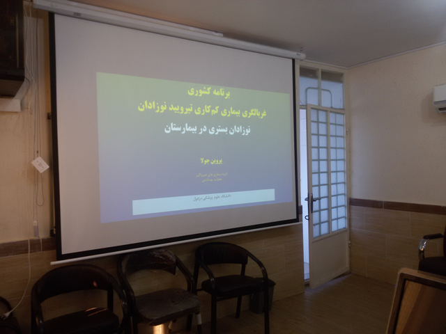 در ابتدای این جلسه دکتر شفیعی نیا مدیر گروه بیماری های غیر واگیر معاونت بهداشتی ضمن بیان اهمیت غربالگری نوزادان، خصوصا نوزادان نارس و همچنین مقدمات شروع طرح مذکور هدف از برگزاری این دوره آموزشی را مروری بر دستورالعمل نمونه گیری نوزادان بستری در بیمارستان ها و همچنین  بررسی طرح  عوامل خطر موثر در بروز کم کاری تیروئید نوزادان عنوان کرد. وی گفت این طرح در دانشگاه های با بروز بالا  از ابتدای تیرماه سال جاری بصورت یک مطالعه توصیفی تحلیلی اجرا خواهد گردید. در ادامه پروین جولا کارشناس برنامه تیروئید معاونت بهداشتی پیرامون چگونگی اجرای این مطالعه توضیحاتی را ارائه و به تبیین دستورالعمل چگونگی نمونه گیری از  نوزادان بستری در بیمارستان ها بخصوص نوزادان نارس  پرداخت. ایشان اهمیت دستورالعمل مذکور را ارتقا سطح پوشش غربالگری و کاهش موارد عدم پیگیری برشمرد. وی گفت اجرای صحیح طرح مطالعاتی که  نتایج این مطالعه کشوری از سوی وزارتخانه متبوع  ابلاغ گردیده  بستری مناسب جهت انجام مداخلات آتی بوده و خواستار اجرای طرح، بصورت  ثبت و ورود اطلاعات نوزادان بیمار از ابتدای تیرماه سال جاری شد.