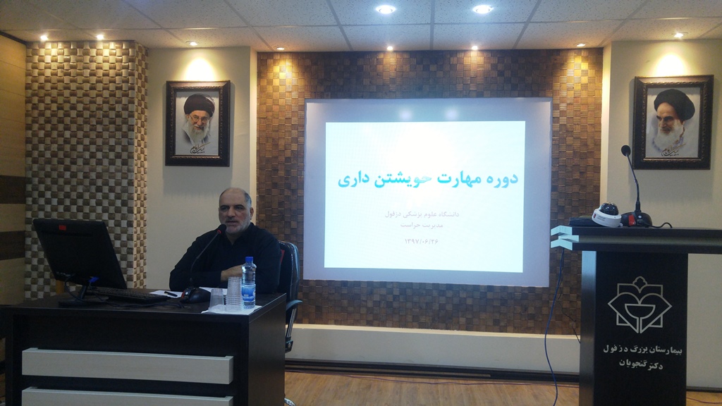 21و26شهریوردرایام سوگواری سروروسالارشهیدان حضرت اباعبدالله الحسین ع مدیریت حراست دانشگاه علوم پزشکی دزفول جهت کارکنان حفاظت فیزیکی خوددرتمام واحدها،دوره تکریم ارباب رجوع ومهارت خویشتن داری راباحضوراستادحبیب الله سعددربیمارستان بزرگ دزفول برگزارکرد.