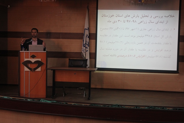 در این همایش که با هدف بررسی آخرین وضعیت هواشناسی منطقه از نظر طوفانهای گرد و غبار و راهکارهای موثر در جهت کاهش اثرات مواجهه با آلاینده های ناشی از شرایط آلودگی هوا برگزار شد، ریاست دانشگاه ضمن بیان اهمیت آلودگی هوا و تاثیرات آن بر زندگی روزمره بر لزوم اهمیت و رعایت الگوی مصرف آب همچنین اقدامات لازم در جهت مقابله با خشکسالی تاکید کرد. در ادامه توسط دکتر نیسی، عضو هیئت علمی و استاد دانشگاه علوم پزشکی اهواز و همچنین دکتر سبزه زاری مدیر کل هواشناسی استان خوزستان در خصوص آلودگی هوا و آخرین وضعیت آب و هوایی در استان مطالب ارزنده ای جهت حاضرین در همایش ارائه شد.